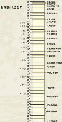 看到这里,想必小伙伴们对体育运动计时器及其重要性有了一定的了解。体育计时器有很大的发展空间。大家有所不知,时间是世界上能够测量的最准的物理量,我们把地球上的时间尺度可以划分44级台阶,可以看出目前科技水平能够测量的最小的时间单位是10-18 s,能够算出的最小时间单位是10-25 s(Z0粒子的寿命)