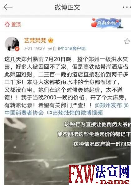 郑州希岸酒店暴雨后涨价被罚50万7月20日,河南郑州遭遇特大暴雨袭击,众多人员被困市区,滞留在郑州的网友表示,位于郑州市金水区东站南路与心怡路交叉口升龙国际2号楼B座的希岸酒店,竟趁机大幅度涨价,一间房涨价到2888元。 7月21日晚,网友“艺梵梵”发布微博称:“7月20日晚上整个郑州洪水灾害,好多人被困回不了家,但是高铁站希岸酒店借此赚国难财,200元、300元一晚的酒店直接涨价到2000多元、3000多元。本身大家都被雨水冲得全身都湿透了,又没有电,她们在这个时候轰然起价,太不道德!我于当晚2000元一晚的价格,开了个大床房,有转账记录,希望有关部门严查!”