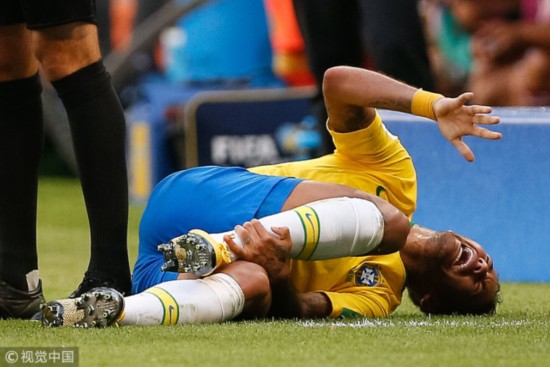 然而,内马尔习惯于在被对手侵犯倒地后痛苦翻滚,这让对手和球迷感到不满。瑞士电视台统计,巴西前锋在世界杯期间躺在草坪上累计达到14分钟,对墨西哥一战,内马尔在被拉云踩到之后躺了2分钟,而在这场八分之一决赛里,巴西人共倒地5分钟29秒。在小组赛时,内马尔在对塞尔维亚倒地1分56秒,对瑞士则是3分40秒,累计则达到13分50秒。