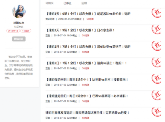 专家球姐近日世界杯+小联赛豪取11连红,早场美职红单后还刷新了个人的最长连红记录。