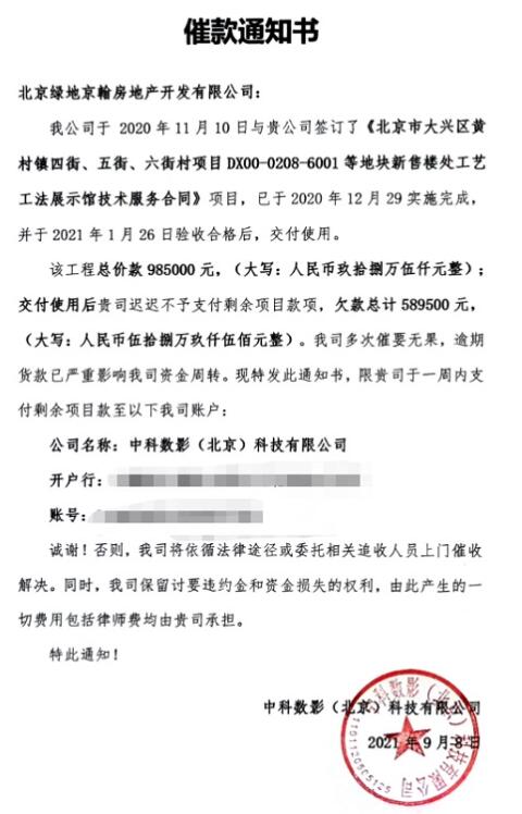 | 绿地,请付款!北京绿地海珀云翡项目,请付款! 绿地,请付款! 北京绿地海珀云翡项目,请付款! 北京绿地京翰房地产开发有限公司,请付款! 绿地京翰房产公司项目接收后,一直不结款,不理催款函! 合同约定由中科公司承担该展示馆项目的布展工程,合同总价为98万5千元。约定支付总价30%后乙方即作出项目的方案设计、施工图制作、设备订购、软件架构设计、施工进场前安排等相关工作;这些工作完成后,甲方再支付合同价款的20%;布展工程竣工达到验收合格标准后,甲方支付项目尾款即总款项的45%。 ![]() 合同签订后,中科公司即进场布展。于2020年12月实施完成,并于2021年1月26日经绿地京翰房地产公司验收合格后交付使用。 绿地京翰房地产公司始终没有按照合同约定付款,尚欠中科公司58万9500元。 ![]() 截止到今日,整整一年,中科公司多次催要无果;该公司咨询律师后,于9月3日向北京绿地京翰房地产开发有限公司发去了催款函,绿地依旧没人理睬,没有一个领导出面告知有何推进,何时付款! 北京绿地京翰房地产公司是上市公司绿地集团旗下公司,当以诚信为本,不能坑害合作伙伴!干活的时候催命一样,结款就假装看不见,如此人吃血馒头,是资本的无情?还是企业道德的沦丧?? 北京绿地海珀云翡项目本是北京知名项目,款项不能按时支付!如此不诚信企业,购房者能放心购买?供应商还能免费干活?投资方还敢继续投资?股民仍旧坚持信任? 恰逢十九届六中全会之际,国家一直在推进中小企业款项管理问题: 国家也早有规定“清理拖欠民营企业中小企业账款,加大清欠力度完善长效机制。并提出,中央企业要带头优先偿还对民营企业的逾期债务,年底前做到’零拖欠’。” ![]() 根据工信部2019年发布的《及时支付中小企业款项管理办法》,对国家机关、事业单位和大型企业支付中小企业款项有明确规定: 第九条【付款期限】国家机关、事业单位和大型企业从中小企业采购货物、工程、服务的,应当在30日内付款;付款期限最长不得超过60日。 第十六条【迟延支付责任】国家机关、事业单位和大型企业迟延支付中小企业款项的,应当支付逾期利息。双方对逾期利息的利率有约定的,从其约定,但不得低于中国人民银行同期同类贷款基准利率;未作约定的,按照中国人民银行同期同类贷款基准利率的1.5倍支付利息。 第十七条【受理投诉机构】国务院负责中小企业促进工作综合管理的部门应当建立迟延支付中小企业款项投诉平台(以下称投诉平台),受理中央管理的事业单位、国有大型企业迟延支付中小企业款项相关的投诉。 第三十一条【滥用优势地位】大型企业滥用市场优势地位强迫中小企业接受不合理的付款期限或者迟延支付中小企业款项的,由市场监督管理部门责令改正,并处10万元以上50万元以下罚款。 |