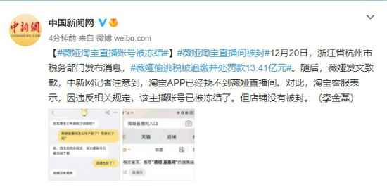 原标题:薇娅淘宝直播账号被冻结 12月20日,浙江省杭州市税务部门发布消息,薇娅偷逃税被追缴并处罚款13.41亿元。随后,薇娅发文致歉,中新网记者注意到,淘宝APP已经找不到薇娅直播间。对此,淘宝客服表示,因违反相关规定,该主播账号已被冻结了。但店铺没有被封。(李金磊) ![]() ![]() 相关新闻: 浙江省杭州市税务部门依法对黄薇偷逃税案件进行处理 来源:国家税务总局杭州市税务局 近期,浙江省杭州市税务部门经税收大数据分析发现网络主播黄薇(网名:薇娅)涉嫌偷逃税款,在相关税务机关协作配合下,依法对其开展了全面深入的税务检查。 经查,黄薇在2019年至2020年期间,通过隐匿个人收入、虚构业务转换收入性质虚假申报等方式偷逃税款6.43亿元,其他少缴税款0.6亿元。 在税务调查过程中,黄薇能够配合并主动补缴税款5亿元,同时主动报告税务机关尚未掌握的涉税违法行为。综合考虑上述情况,国家税务总局杭州市税务局稽查局依据《中华人民共和国个人所得税法》《中华人民共和国税收征收管理法》《中华人民共和国行政处罚法》等相关法律法规规定,按照《浙江省税务行政处罚裁量基准》,对黄薇追缴税款、加收滞纳金并处罚款,共计13.41亿元。其中,对隐匿收入偷税但主动补缴的5亿元和主动报告的少缴税款0.31亿元,处0.6倍罚款计3.19亿元;对隐匿收入偷税但未主动补缴的0.27亿元,处4倍罚款计1.09亿元;对虚构业务转换收入性质偷税少缴的1.16亿元,处1倍罚款计1.16亿元。日前,杭州市税务局稽查局已依法向黄薇送达税务行政处理处罚决定书。 杭州市税务局有关负责人表示,税务部门将持续加强对网络直播行业从业人员的税收监管,并对协助偷逃税款的相关经纪公司及经纪人、网络平台企业、中介机构等进行联动检查,依法严肃查处涉税违法行为,切实提高税法遵从度,营造法治公平的税收环境。 |