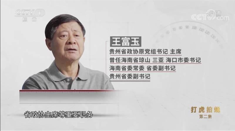 “我现在知道我疯狂的贪欲登峰造极,但我不知道要钱为了什么。”贵州省政协原党组书记王富玉在电视镜头前剖析自己。![]() 贵州省政协原党组书记王富玉出现在电视专题片《零容忍》第二集《打虎拍蝇》上。央视截图 1月16日晚,中纪委反腐电视专题片《零容忍》第二集《打虎拍蝇》播出,王富玉长达26年的贪腐史被详细披露。 王富玉任省部级领导干部长达20余年,先后在海南、贵州担任省委常委、省委副书记、省政协主席等重要职务,2018年退休。2021年2月,中央纪委国家监委宣布他因涉嫌严重违纪违法接受审查调查。 长期以来,王富玉生活奢靡,在多地拥有豪华别墅;任职期间,他指示弟弟、儿子出面,与人“合作”生意,自己藏身幕后运作,借机敛财,到了党的十八大甚至十九大之后,仍然不收手,退休后变得更加肆无忌惮。 2021年11月30日,王富玉在天津一中院受审。他被控受贿4.34亿余元,此外还在退休后利用影响力受贿1735万余元,他当庭表示认罪悔罪。 ![]() 王富玉在镜头前自述。央视截图 生活奢靡:酷爱高尔夫,四季换三个城市居住 贪图享乐、追求奢靡生活的问题,在王富玉身上表现得非常突出。“他甚至想着冬天要住三亚,夏天要住贵阳,春天、秋天要住深圳,所以他安排老板在三亚、深圳、贵阳给他买房,然后再装修。”中央纪委国家监委第十监督检查室副主任王衡介绍。 中央纪委审查调查发现,王富玉利用职务便利和影响力在工程承揽、土地开发、企业经营等方面为他人牟利,非法收受巨额财物。专案组发现了多套涉案房产,有的是王富玉直接收受,有的是违纪违法所得购买,还有的是老板买下长期供他使用。 专题片展示了王富玉在贵阳长期使用的一套豪华别墅,这栋别墅由与他关系密切的一位老板出资进行了高档装修,电影厅、健身房一应俱全,陈设细节无不讲究。 ![]() 王富玉在贵阳长住的豪华别墅。央视截图 有意思的是,别墅客厅里满墙挂的文字,都是王富玉在标榜自己心系百姓、淡泊名利。 比如,客厅墙壁中间挂的是康熙年间一位知县的名言:“吃百姓之饭,穿百姓之衣,莫道百姓可欺,自己也是百姓。”两侧挂的是一名老板送给王富玉的一副对联:“做人好心洁如玉,为民精神富若仙”。 专题片指出,上述对联煞费苦心地将“富玉”二字藏在其中,对王富玉奉承吹捧。墙上文字和豪华别墅的反差,恰是王富玉“两面人”做派的生动写照。 ![]() 别墅里挂的对联。央视截图 王富玉在海南海口、三亚、琼山等多个城市担任过市长、市委书记等职。在海南发展旅游度假产业期间,高尔夫球场逐渐兴起,王富玉就在那时迷上了打高尔夫,也正是在球场上,他和不少老板逐渐打得火热。 王衡介绍:“上世纪90年代,他开始接触到高尔夫球,非常痴迷,从海南打到贵州,从在职打到退休,甚至要求私营企业主安排他乘坐私人飞机到全国各地打高尔夫球。” 王富玉的另一套别墅就紧邻高尔夫球场,推开窗是一望无际的绿茵,他想打球了随时能下楼挥杆漫步。 王富玉自己承认:“我打高尔夫也打出了很多的毛病……买房子在球场上决定的,拿钱在球场上决定的,这不都成了腐败交易场所了吗?” 伪造假身份证在银行开户,弟弟儿子出面“做生意” 1994年到1998年,王富玉在当时的海南琼山市,市委书记、市长一肩挑,首次尝到了“一把手”的滋味。 “我到了琼山做书记、市长的时候,思想上对自己放松了,就让人家老板拿钱买房子了。”他在专题片中坦陈。作为交换,买房的老板得以承包了当时琼山的重点项目海瑞大桥的部分工程。 此后,王富玉陆续安排多名私营企业主在多地购买了多套房产,放在亲属名下;收受的大量钱款也由弟弟王富保管。 王富玉收受的大量钱款由弟弟王富保管。央视截图 王富玉又安排王富用假名“陈鑫”在河南办理了虚假身份证,自己则用假名“陈克孝”在河北办理了虚假身份证,用虚假身份证开设多个银行账户,累计存入上亿元钱款。在贵州任职期间,王富玉利用权力为儿子王斌获取茅台专卖店经营资格,又违规获取大量茅台精品酒指标,赚取巨额利润。 2014年,茅台集团在三亚投资开发一家度假酒店,商人沈某请托王富玉帮忙承揽项目建设,王富玉安排弟弟王富出面,与沈某以“合作”为名在前台办事,自己藏身幕后运作。沈某顺利中标后,王富以“合作方”名义坐收45%的利润分成。2015到2020年之间,沈某按照约定陆续将六千多万人民币转给王富。 王富玉还通过儿子王斌收受巨额贿赂,也是打着王斌与人“合作”做生意的幌子。浙江一家从事园林绿化的私营企业就以这种方式向王斌输送利益6000多万,王富玉则帮助他承揽了一系列大型项目。 不仅如此,开始收受大笔贿赂后,王富玉从一开始就产生了在境外留后路的想法,早在1995年,他就违规为本人和妻子女儿办理了移民手续,直到2009年他担心影响自己的前程才取消。 “期权式腐败”:在位办事,退休收钱 2012年起,王富玉先后任贵州省政协副主席、主席,“他感到这是退休前最后一站了,收钱敛财的行为更加疯狂。”专题片指出。 王衡介绍:“王富玉涉嫌受贿的金额,党的十八大之后占比高达70%以上,党的十九大之后占比超过30%。” 在党中央强力反腐的背景之下,各地都有省部级高官不断落马,为了规避监督,王富玉采取了新的手段:先帮老板办事,等退休后再收钱,堪称“期权式腐败”典型。 王衡指出,退