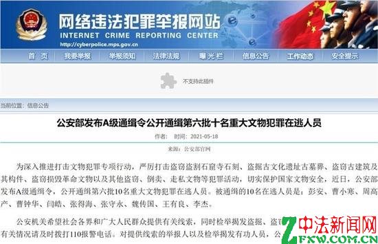 澎湃新闻记者注意到,上述《检察日报》报道提到的曹某华,即2021年公安部发布A级通缉令公开通缉十名重大文物犯罪在逃人员之一的曹钟华。通缉令显示,曹钟华,男,1984年12月8日出生,户籍地:安徽省宣城市宣州区狸桥镇南湖村沙溪组33号。