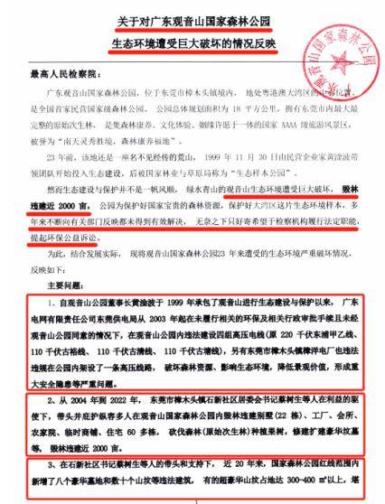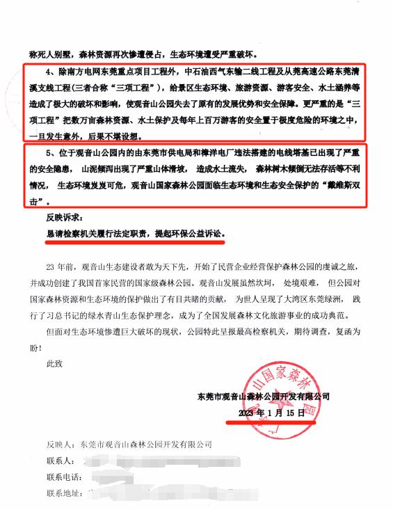 “观音山公园上报的情况反映报告已经广东省人民检察院批转到东莞市人民检察院。东莞市人民检察院最新回复称,已收到材料并对有关情况进行调查核实中。”观音山公园相关管理人无奈地说。