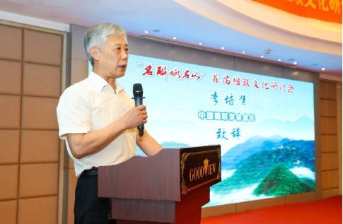 中国楹联学会会长兼秘书长李培隽先生致辞说表示:观音山是中国楹联学会树的一面旗帜,它无愧于‘中国文化名山’的称号。名山大川,自然风光,有了人类文化活动的印迹,特别是文人雅士的吟诵,逐渐成为自然与文化的双重遗产属性。中国的名山大川,因为这些独具中国特色的诗词联赋赋予了它们丰厚的文化内涵,是我们文化传统的重要因素,是我们文化自信的重要源泉,是我们作为中国人的文化骄傲。 名山的名联,是人类精神及艺术审美投射自然的外化,是人类心理和情感的具体物象的双向互动,书法的二度创作,为楹联注入了可观可感立体真实的心灵轨迹和艺术追求。名联,应该是具有历史感文化感和时代感,这是我们楹联独特的性质特点和艺术魅力。 名山是集天地之精气,名联是赋人文之精魂。如何用楹联为名山记名写真,增光敷彩,以壮大好我河山,谱写新时代篇章,是我们楹联人义不容辞的责任。不畏浮云遮望眼,只缘身在更高层。让我们登高望远,勇攀高峰,继续为楹联文化的继承与创新做出更大的努力,争取更新的成绩。