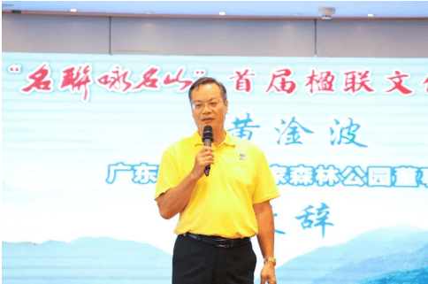 广东观音山国家森林公园董事长黄淦波代表主办方对参会的领导嘉宾表示欢迎:“作为本次活动的主办单位和承办单位,观音山感谢各位在百忙之中莅临本次研讨会现场,共同见证‘两个首次’的伟大时刻,五岳第一次因为文化相聚,六省楹联代表也第一次因为楹联而相聚,两个‘首次’共同产生,共同酝酿,共同擦出文化绚丽的火花,相信有中国楹联学会的引领,有六省楹联学会和六山的共同参与,我们这个历史的开头一定会铭记在历史,而且今后会源远流长。最后祝本次研讨会圆满成功。”