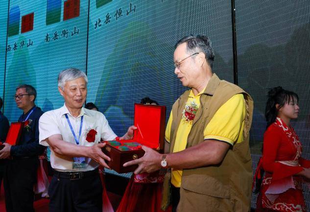 为纪念楹联界与五岳名山携手相聚于观音山,活动组委会及观音山专门为六山订制了一组“名联咏名山”纪念印章。此印为一组三印,纯铜工艺,制作精良,作为纪念品礼赠给各名山。图为中国楹联学会会长李培隽先生为六山之观音山董事长黄淦波赠授纪念印章并合影留念。