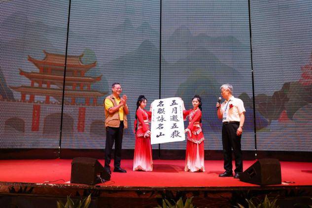 六山携手 万对联心 “名联咏名山”首届楹联文化研讨会在观音山举行 文/李堂平 摄影/景祎 为弘扬文化自信,推动中国楹联文化和文旅事业的高质量发展,同时加强泰山、衡山、华山、恒山、嵩山和观音山等景区之间的交流互鉴,由中国楹联学会、广东楹联学会与广东观音山国家森林公园共同发起主办的“名联咏名山”楹联文化研讨会,于5月24日至26日在广东观音山国家森林公园举行。东岳泰山,西岳华山南岳衡山,北岳恒山、中岳嵩山代表五岳景区的领导嘉宾与山东省、陕西省、湖南省山西省、河南省、广东省六省楹联学会携手齐聚观音山,共同启动“名联咏名山”系列活动,以传承创新,共建发展对传统楹联文化展开交流互动活动。 观音山素来有着“城市绿肺,森林氧吧”的美誉森林覆盖率达90%以上,深受游客喜爱。观音山是集“森林康养、姻缘许愿、文化体验”于一体的4A级旅游景区。楹联文化是景区一大文化特色,每年都会举办数次楹联活动以推动中国楹联文化的传承与发展,2021年被中国楹联学会命名为全国首个“中国楹联文化名山”。