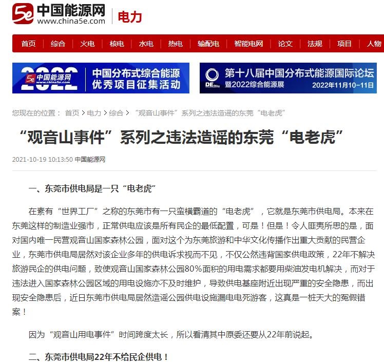 东莞市供电局还造谣观音山电死人,引起网络热议