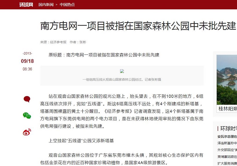 缘起南方电网违法在国家森林公园架设高压线塔