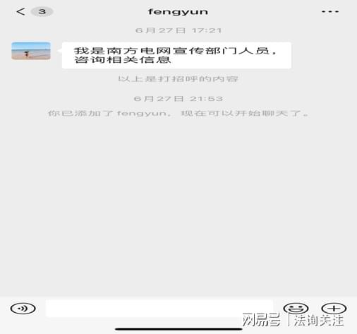 该文发出后的当天下午5时许,有自称是南方电网宣传部门人员,加法讯君为好友,欲咨询相关信息。