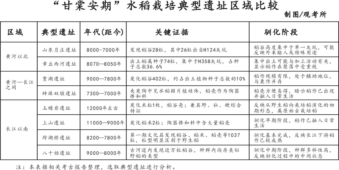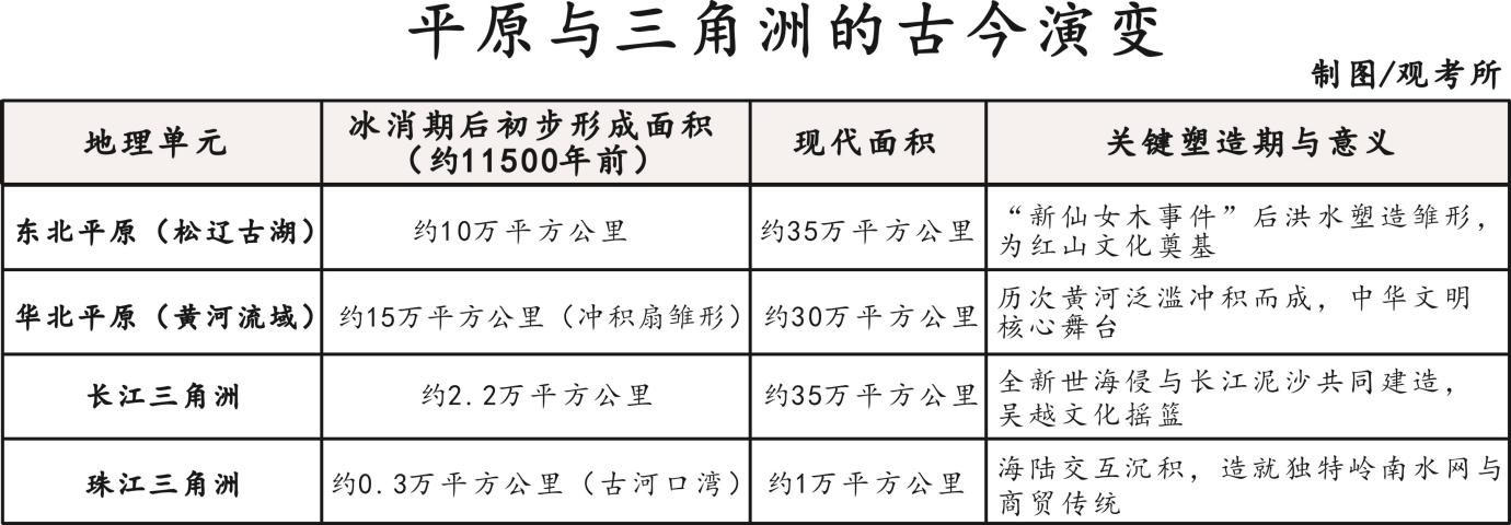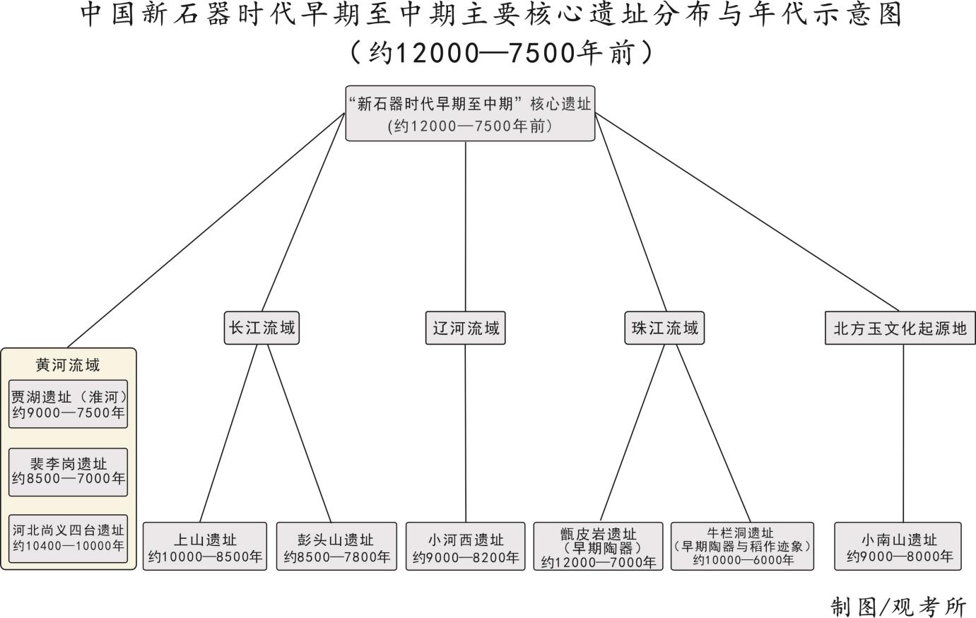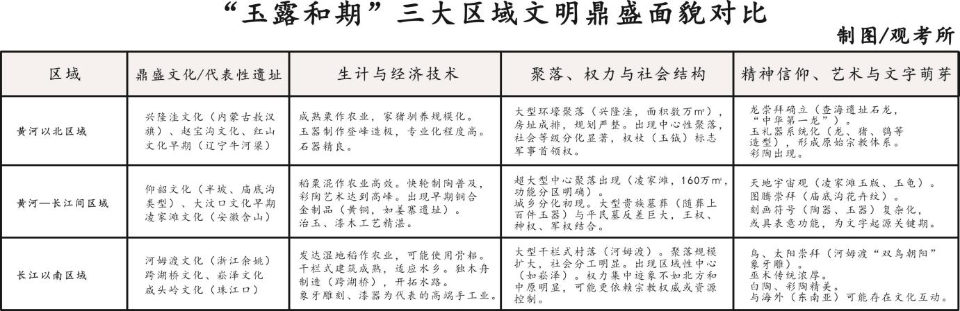 开篇:四张核心图表的启示——解码气候与文化演进的万年对话 在我们脚下这片孕育了人类文明、看似永恒的土地之下,其实埋藏着一部惊心动魄的万年史诗。这部史诗的篇章,由冰与火、水与土交替书写,主角是我们的祖先,导演则是反复无常的全球气候。 谁来揭示它?这可能吗?又有何种震撼人心的学术价值?一个全球性的文化谜题为我们提供了线索:据统计,全世界有超过600个民族的神话与传说中,都有关于大洪水的描述。其范围之广,跨越五大洲,这难道仅仅是巧合?还是远古人类对一段共同恐怖记忆的集体回响?真实情况究竟如何?是一场席卷全球的单一灾难,还是周期性上演的天地浩劫?时至今日,我们理应运用现代科学的力量,综合多学科的研究成果,对这一塑造了人类命运的现象进行系统性的解码。 您是否想过,在文字尚未诞生的蒙昧年代,我们的先祖是如何面对那足以抹平一切、持续数十年甚至数百年的万古寒荒般的严寒,以及随之而来的、吞噬家园的滔天大洪水?文明微弱的火种,又是如何在极端的冰封与滔天的洪流中得以保存,并最终燃成照亮东方的燎原之火?中华文明的坚韧幼苗,如何在万年前的冻土中萌发,一路栉风沐雨,长成参天巨树,并在全球古文明大多已中断的背景下硕果仅存,成为人类万年历史绵延至今的主要古老文明体之一。 能为这些疑问提供系统性答案的离不开这四张核心图表。 图一:12800年来全球气温变化示意图 图二:四次大降温事件年代参数及对中华文明演进的影响 图三:12800年来全球气温变化引发的洪水事件对应表 图四:中华文明万年间各黄金时期演进对照表 这四张图表绝非冰冷数据的简单罗列。它们是一个全新研究范式的呈现——“气候—文明互动分析框架”,该范式由东莞观音山考古研究所团队经过多年探索,在充分吸纳前人成果、去伪存真的基础上,创造性地融合古气候学、地质学、考古学、古天文学、分子人类学、语言学等多学科方法而提出。它清晰地揭示:中华文明的发展节奏,与全球气候的周期性剧变息息相关,文明的每一次重大进步,都深深烙刻着适应环境挑战的印记。 本文正是运用这一范式,首次尝试以“黄河以北”“黄河—长江之间”“长江以南”这三大具有鲜明生态与文化差异的地理舞台为叙事主线,带领读者重返那段波澜壮阔的岁月。我们将看到,从约12800年前“新仙女木事件”的毁灭性寒冬,再到约5500年前各大区域文明百花齐放的鼎盛时期,气候如何像一只无形巨手,塑造着中华大地的山河地貌,筛选着动植物种群,也锤炼着我们祖先的生存策略、社会组织与精神世界。这是一部关于生存、适应与创造的万年史诗,而“大考古观”下的“观音山新范式”,正是我们打开这部史诗之门的钥匙。 本文的核心在于重点讲述中华文明的发展历程,故世界其他地区的文明演进进程在此暂且不表。然而,本文所构建的“气候—文明互动”分析框架具有普适性。若能以此框架为工具,参照世界其他各地的考古证据,亦可勾勒出全球其他各大洲及各地理单元的基本概况。 本文在广义上使用“中华文明”一词,指代在中华大地上自万年前以来孕育、发展,并最终形成连续不断文化传统的整个进程,其早期阶段通常被称为“文化”或“复杂社会”。 第一部分:“四表”的学术价值与考古赋能 1.总述“四表”揭示的宏观规律与文明韧性 上述四张核心图表揭示了一个超越线性史观的宏观规律:中华文明的发展轨迹,并非一帆风顺的坦途,而是在“气候剧烈降温—冰川扩张大面积南下—气候急速回暖—冰川崩解消融—特大洪水席卷—冲积平原扩展—气候相对稳定—万物蓬勃生长—新一轮降温”的周期性震荡中,经历着毁灭性打击与奇迹般的重生。每一次全球性的环境剧变之后,往往迎来一段长达数百乃至数千年的相对稳定期,即“黄金时期”。文明的薪火就在这“毁灭(剧变)—重建(黄金期初期)—发展(黄金期鼎盛)”的循环中,一次次淬炼,一步步迈向更高阶的复杂社会。 我们将这种在极端环境压力下不仅能够存续、更能实现复苏与跃升的能力,定义为中华文明早期韧性的核心体现。而“四表”所构建的“气候—文明互动分析框架”,正是我们解码这份万年韧性的关键工具之一。 2.介绍四大黄金期的文化命名(甘棠安期、玉露和期、景风明期、嘉穗丰期)及其人文内涵 观音山考古研究所研究团队以众多学科考古成果为基础,创造性地从中华典籍中提炼出具有深厚文化内涵的命名体系——“甘棠安期”(约11500年—8200年前)、“玉露和期”(约7900年—5500年前)、“景风明期”(约5200年—4300年前)与“嘉穗丰期”(约3900年前—清代时期)。这套命名不仅根植于考古实证,更承载着对文明韧性的深刻理解,通过科学与人文交融的叙事框架,向世界展现中华文明在万年气候挑战中持续发展的独特智慧。 从这一宏大视角延伸开来,我们发现世界其他各大洲古人类的命运走向,与这四张图揭示的气候律动同样密不可分。不同的是,由于地理环境、资源禀赋和社会结构等多重复杂原因,其他大陆的古文明在严酷的气候挑战下都相继中断,未能将火种传递至今。唯有中华文明凭借其优越的地理环境和独特的适应智慧、坚韧的社会组织及强大的文化凝聚力,百折不挠,长盛不衰,在一次次劫难后焕发新的生机,发扬光大,最终成为人类文明史上最具代表