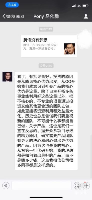马化腾回应《腾讯没有梦想》一文