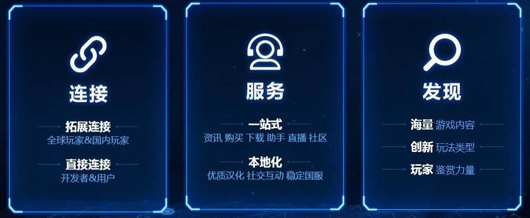 2、平台提供一站式服务,包括游戏的资讯、购买、下载、助手、直播和社区功能【以后不用在FQ了】