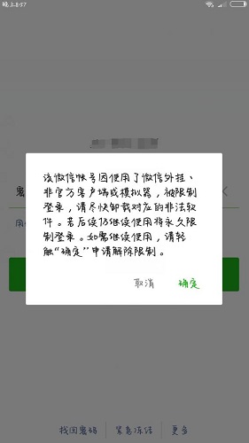 昨晚八点,微信盲扫用户文件,查封xp框架,只要找到文件,不管有没有使用与微信有关的框架一律封号。
