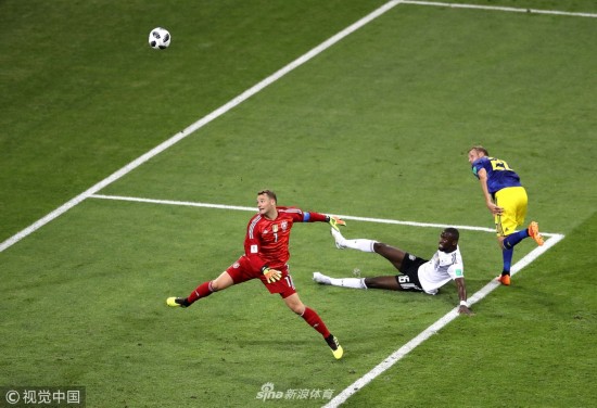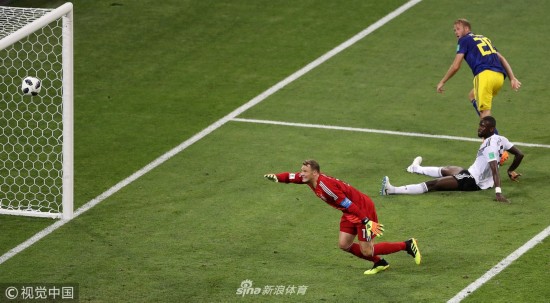 北京时间6月24日,世界杯F组小组赛,德国vs瑞典,比赛第32分钟,克罗斯传球失误,瑞典打出反击,前锋托伊沃宁挑射攻破了诺伊尔镇守的球门。