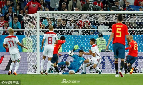 北京时间6月26日,世界杯B组小组赛,西班牙vs摩洛哥,比赛第19分钟,伊涅斯塔突破后送出妙传,跟上的伊斯科一脚爆射洞穿了摩洛哥的球门。