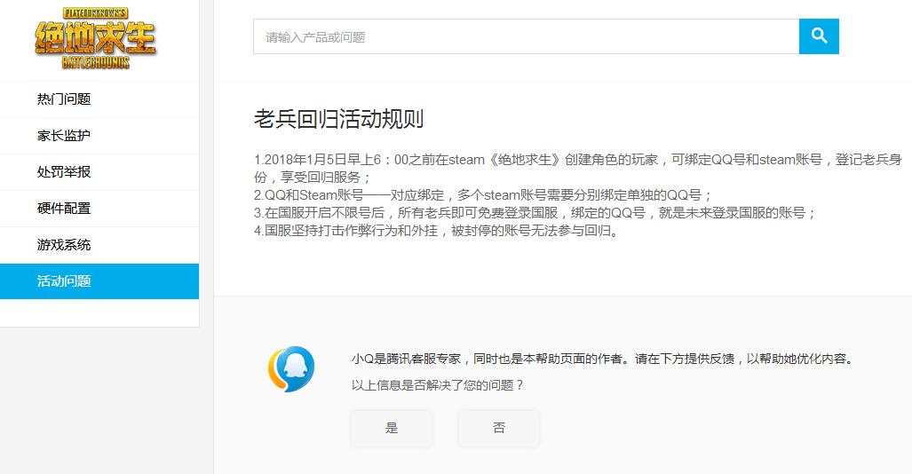 今天看到这个消息,挺高兴,还算腾讯有点良心,不重坑一波钱,不过顺便锤了一波刀网! 1.2018年1月5日早上6:00之前在steam《绝地求生》创建角色的玩家,可绑定QQ号和steam账号 2.QQ和Steam账号一一对应绑定,多个steam账号需要分别绑定单独的QQ号 3.在国服开启不限号后,所有老兵即可免费登录国服,绑定的QQ号,就是未来登录国服的账号 4.国服坚持打击作弊行为和外挂,被封停的账号无法参与回归。 |