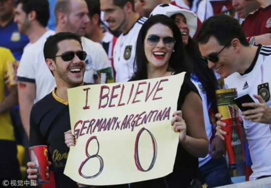 2014年世界杯决赛德国球迷称要赢阿根廷8-0 【世界杯真的有人品论吗?】 其实,从根本上来说,所谓的人品论不过是大众娱乐的噱头而已。过去没有,想必在未来也不可能会有足够的科学理论支持人品论,它类似于齐达内的“玄学”、贝利的“乌鸦嘴”,无非是多出一个赛后用以调侃的谈资而已。 德国队身为卫冕冠军,在征战过程中树敌无数,有多少人喜爱他们,就有多少人讨厌他们。在这种极端的情况下,德国队的任何错误都会被放大,更何况小组赛未能出局,创历史最差战绩的惊天耻辱,更是会被拿出来各种批判。人品论只不过是其中的一个角度而言,当你一顺百顺时,高调嚣张会被形容成为王者风范,当你一损俱损时,你一点点的高调也会被用来作为嚣张跋扈的证据。 不只是德国,其他世界顶级强队几乎都遭遇到过“人品论”的质疑。譬如法国、巴西、西班牙等队,现在他们还没有犯下太大的错误,不攒人品的帽子还没有扣在他们手上。但是看看阿根廷前两轮遭受的待遇吧,如果不是罗霍绝杀救主,恐怕现在潘帕斯雄鹰承受的压力也不会比德国小多少。 很大程度上,人品论只不过是那些拥有超高流量球队所引发出来的一个带有娱乐性质的话题,要说世界杯上真的存在所谓的“人品”,那是不太可能的。
