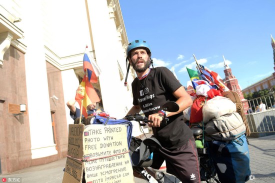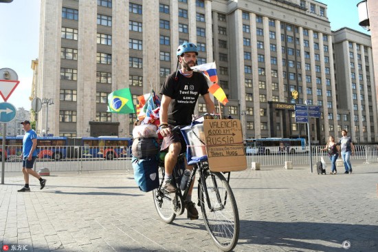 高清:这哥们骑车来看世界杯 这个点来正好赶上淘汰赛