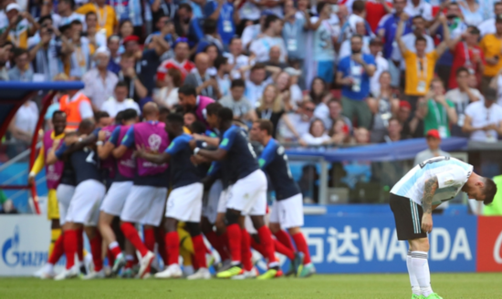 姆巴佩打花阿根廷 但在淘汰赛当中,法国突然变脸了,他们拿出了世界杯最贵身价的实力。开场前10分钟,19岁的姆巴佩就有两次极为精彩的突破,第一次造成了马斯切拉诺的犯规,格列兹曼任意球击中横梁。第二次姆巴佩单骑闯关,一人狂奔50米为球队赢得了一粒点球,格列兹曼将球罚入。 下半场在危机关头,22岁的帕瓦尔站了出来。他接左侧埃尔南德斯的传中,在禁区前沿抽出了一脚“神仙球”,球带着强烈的旋转,最终打入了左上角,没有给对方门将任何的机会。这名22岁的小将一战成名,在世界杯之前或许就连法国队球员都对这名小将不太了解,在今晚的比赛中他证明了自己的实力,德尚用他而把西迪贝按在板凳上是有原因的。