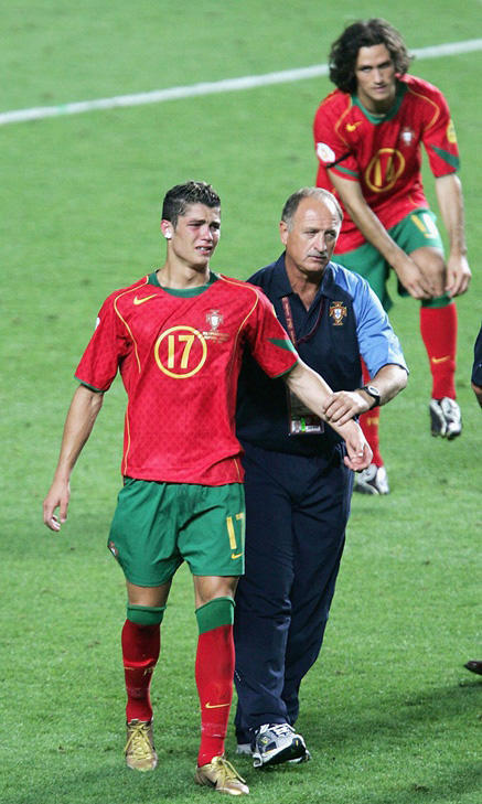 那一个瞬间,C罗的思绪回到了14年前,04年欧洲杯决赛失利的他也被老大哥菲戈、科斯塔等人揽入怀中安慰到:“别哭,孩子,未来是你的!”