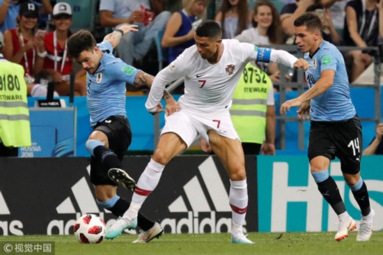 他说,我知道热门不是我,不是葡萄牙,热门是梅西,是阿根廷……但C罗认吗?世界杯第一轮,面对强大的西班牙,他贡献了葡萄牙仅有的3次打在球门范围内的射门,甩出了帽子戏法,之后他又顶出一记精彩到犯规的头球,帮助葡萄牙占据了出线的绝对主动权!即便在今天被乌拉圭出色的防守体系严密盯防的情况下,他也一次又一次地与对手对抗,希望能够撞开乌拉圭严丝合缝的防线。
