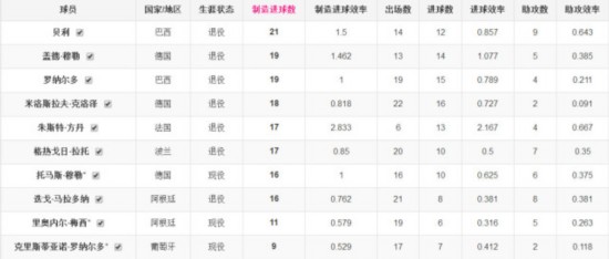 梅罗在世界杯上的制造进球数对比。 而在五大联赛制造进球(进球数+助攻数)的历史榜单上,梅西以531球冠绝古今,C罗以516球紧随其后,相比之下这让格里夫斯和穆勒450粒左右的制造进球数显得黯淡无光了。 在联赛中,梅罗已经把古人的史诗数据踩在了脚下,但在世界杯中,梅罗的数据却显得平淡无奇了。