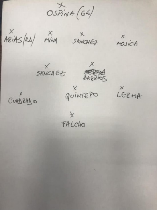 根据哈尔预测的首发名单,哥伦比亚今天将采取4-2-3-1阵型,门将奥斯皮纳,后卫阿里亚斯、米纳、桑切斯、莫吉卡,中场桑切斯、巴里奥斯,前腰夸德拉多、金特罗、莱尔马,中锋法尔考。